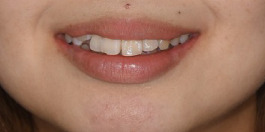 | 治療内容 | 目立ちにくいマウスピース矯正(非抜歯矯正) 歯と歯の間に隙間をつくることにより、歯列弓を広げながら治療を行いました。 |